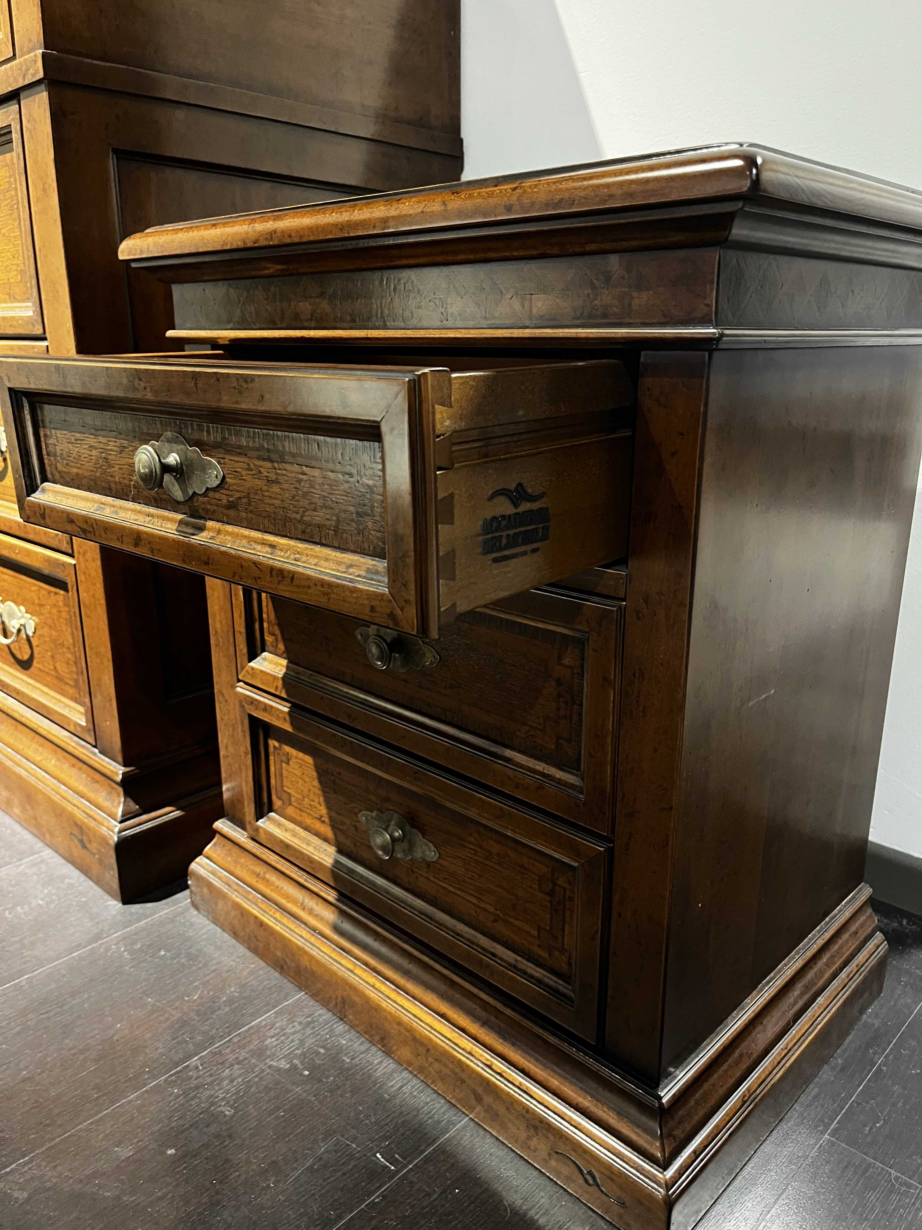 Gruppo composto da comò, 2 comodini e specchiera in legno stile classico.