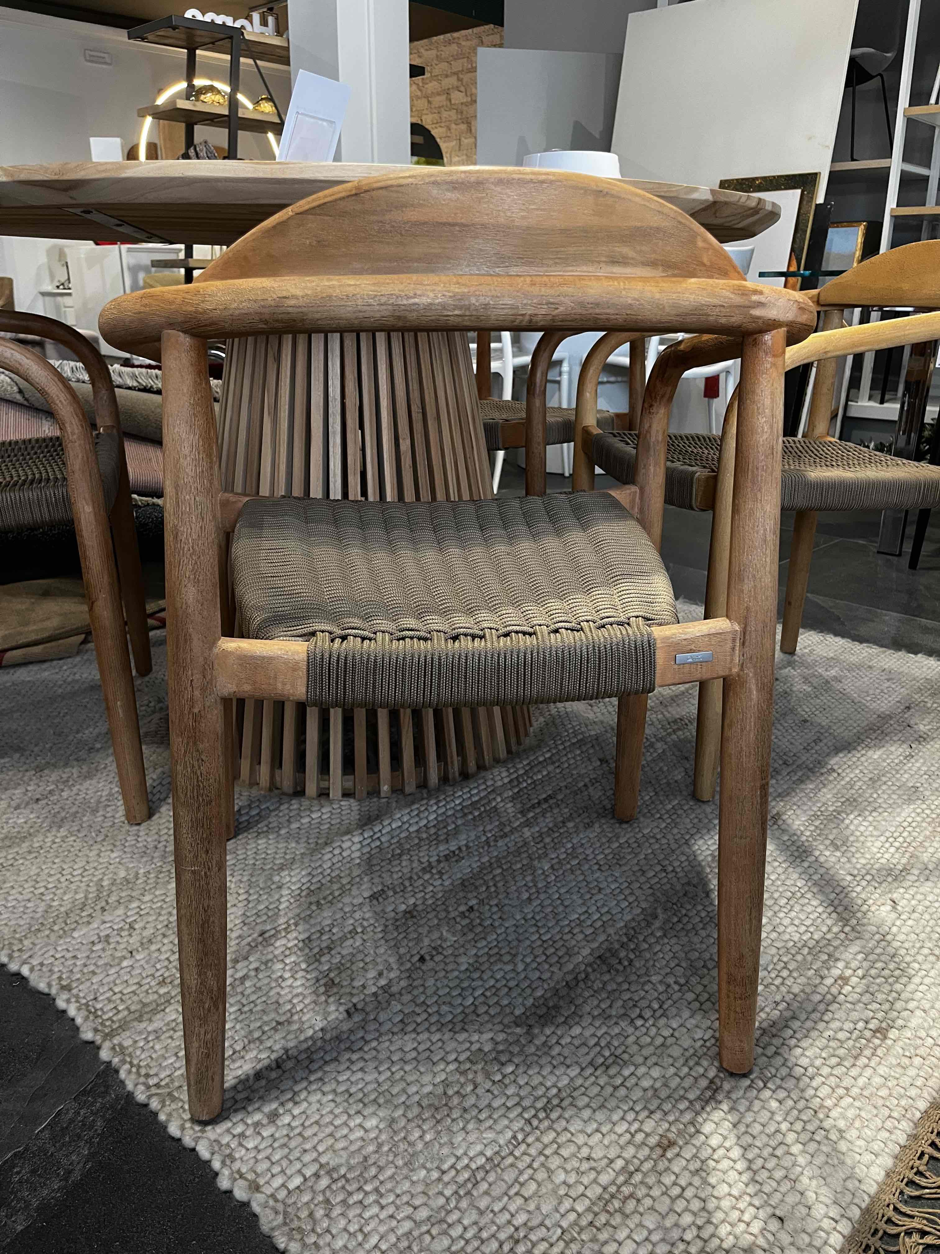 Sedia impilabile Kave Home modello Nina in legno massello di acacia e corda beige.