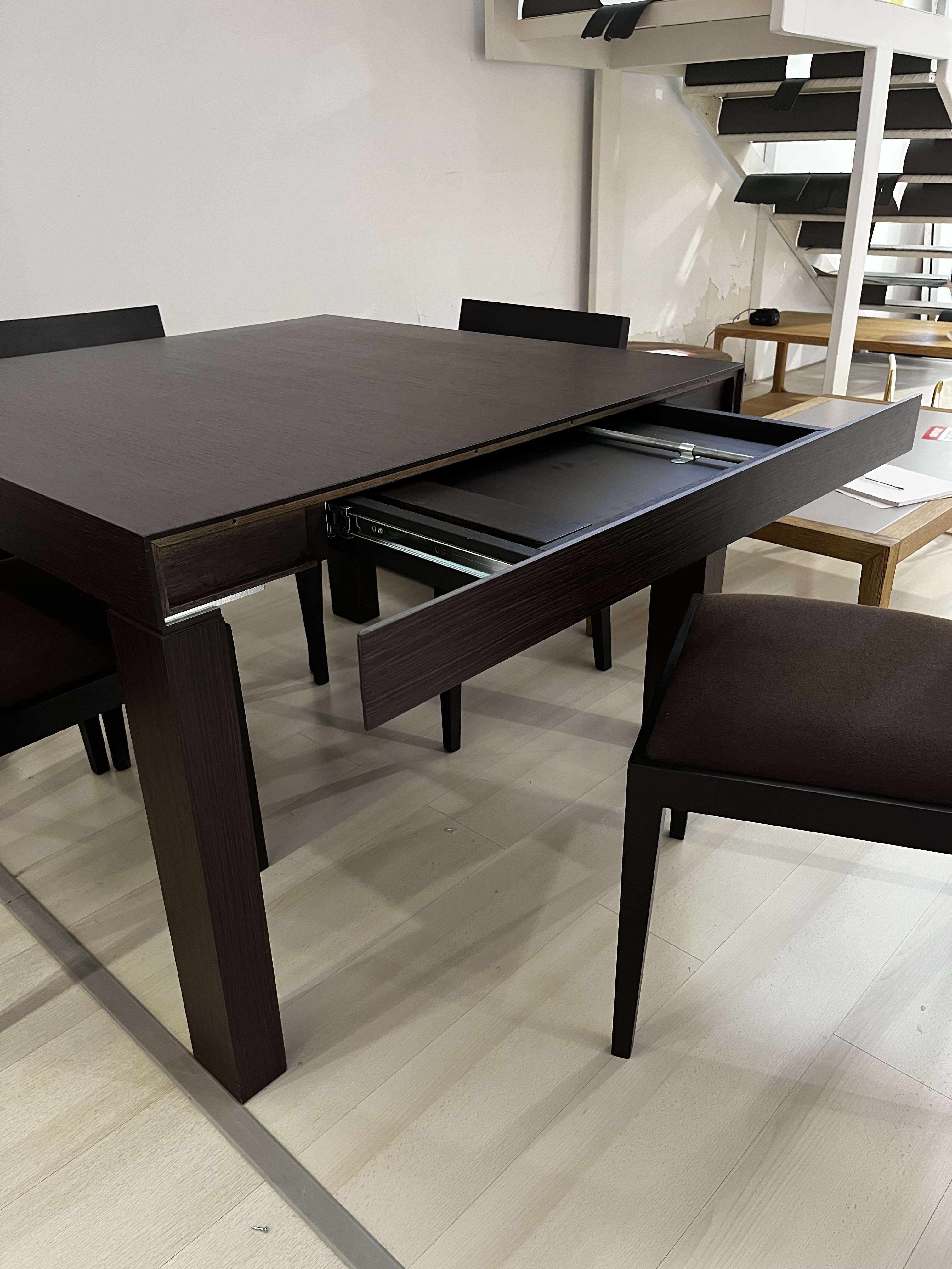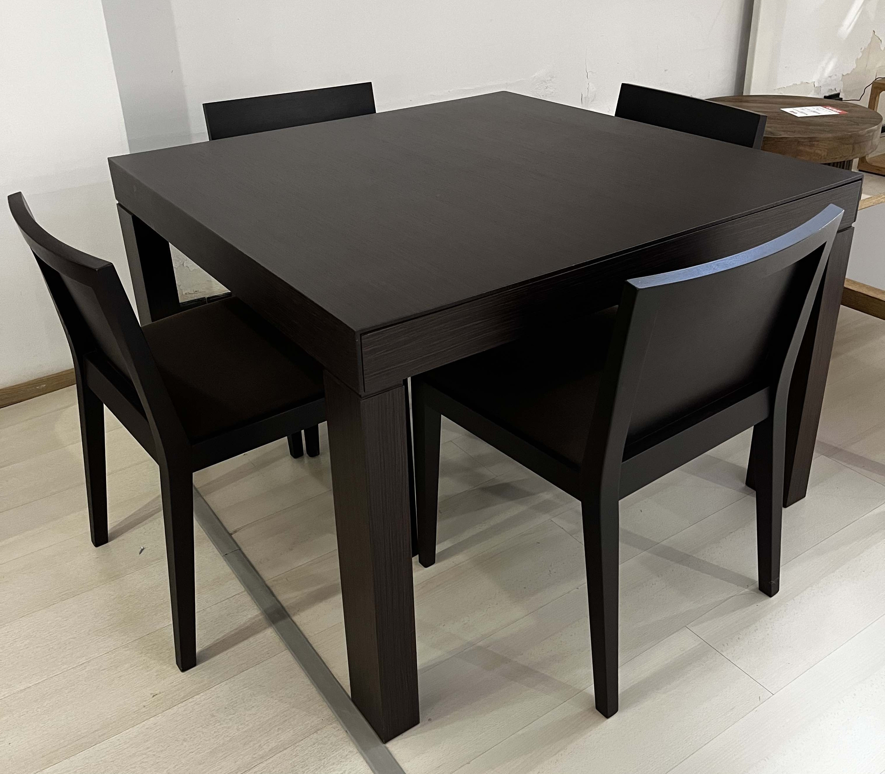 Tavolo quadrato marrone allungabile con 4 sedie incluse.