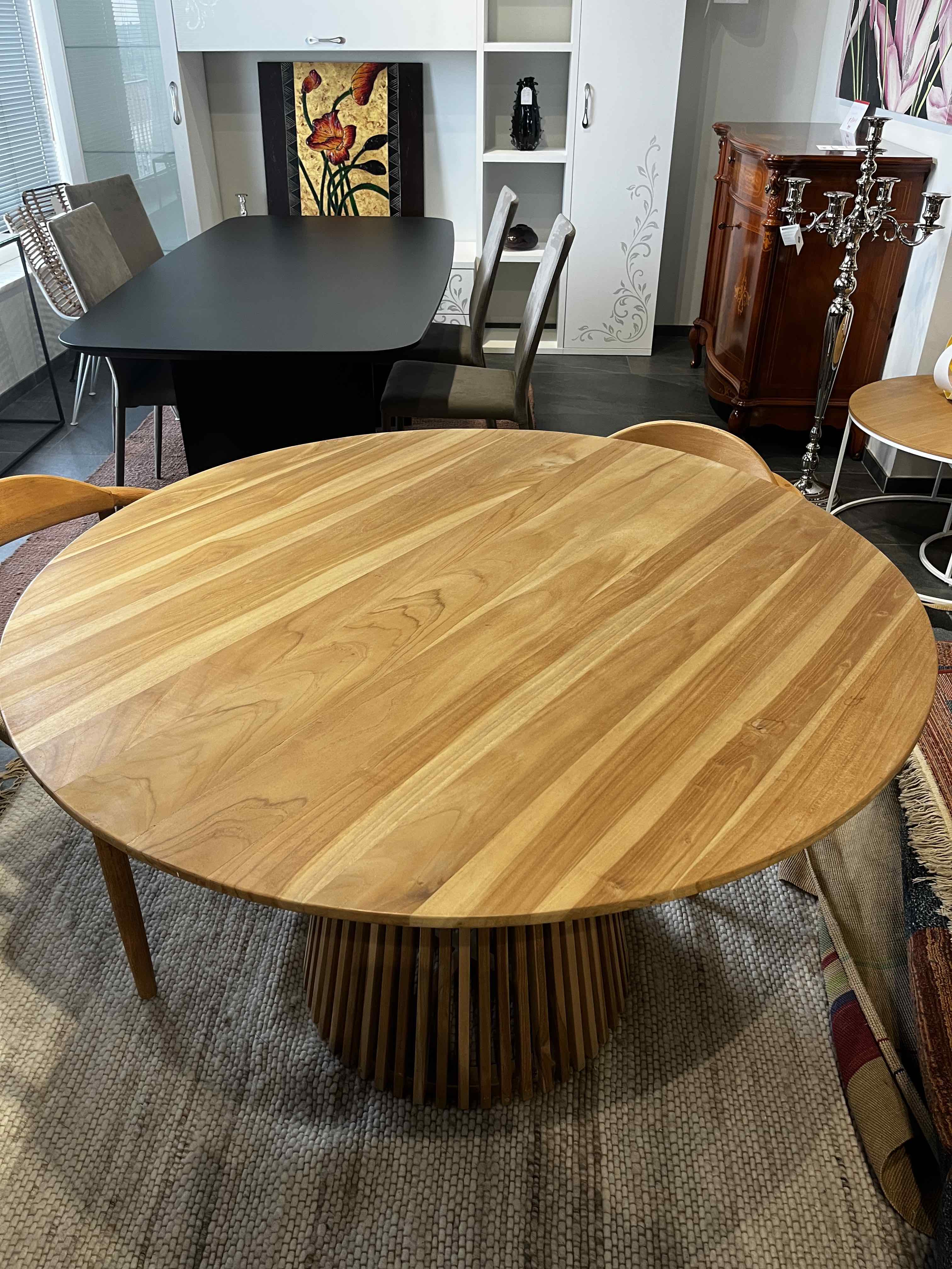 Tavolo rotondo in legno massello di teak Kave Home, modello Jeanette.